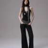 ✰ Polka dot stripe flared pants, featuring high waisted folded waistband design hugs the body shape, ensuring easy and comfortable wearing. The front custom cat tooth logo decoration will be placed on the left side, adding a touch of delicacy and cuteness.
