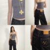 ✰ This top features a unique halter design with a striking color-block combination. It is embellished with pearl rhinestones, giving the garment a sophisticated and stylish flair. The double strap design adds to the modern and fashionable appeal. Its structure is designed to enhance the shoulders, giving the wearer an elegant, well-proportioned silhouette.