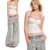 ✰ This top features a unique halter design with a striking color-block combination. It is embellished with pearl rhinestones, giving the garment a sophisticated and stylish flair. The double strap design adds to the modern and fashionable appeal. Its structure is designed to enhance the shoulders, giving the wearer an elegant, well-proportioned silhouette.