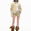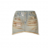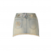 ✰ A faded effect for a vintage-inspired look defines this mini denim skirt with inbuilt shorts. The design features heavy enzyme bleaching, double spray treatment, multi-position monkey washing, dyeing, and irregular heat pressing to enhance the layered look.