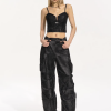 ✰ Our silence colossus trousers are crafted from a faux leather fabric which feature a distressing detail. These trousers are designed in an oversized Colossus fit in a black colourway.