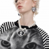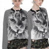 ✰ This graphic long sleeve tee with a striking cat print and striped sleeves exudes a fun, artsy vibe. Perfect for mixing and matching with jeans or skirts for a playful street style.