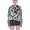 ✰ This graphic long sleeve tee with a striking cat print and striped sleeves exudes a fun, artsy vibe. Perfect for mixing and matching with jeans or skirts for a playful street style.