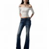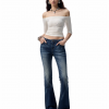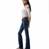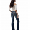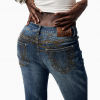 ✰ This classic dark blue washed skinny flared pants feature low waist and a fitted silhouette and the misaligned construction and heavy embroidery accents create a retro yet chic vibe at back. The flared leg design highlights the leg lines, making them appear slimmer and straighter. Made of carefully selected twill cotton like stretch denim fabric, the fabric surface is fine, dense, and firm, balancing shape and softness.