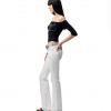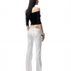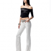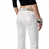 ✰ This classic white washed skinny flared pants feature low waist and a fitted silhouette and the misaligned construction and heavy embroidery accents create a retro yet chic vibe at back.. The flared leg design highlights the leg lines, making them appear slimmer and straighter. Made of carefully selected twill cotton like stretch denim fabric, the fabric surface is fine, dense, and firm, balancing shape and softness.