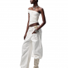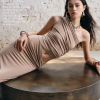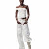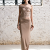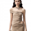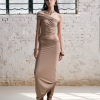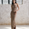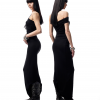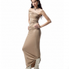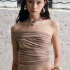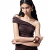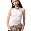 From the Light – Breathe series. A highly innovative single shoulder ruched vest silhouette. The single side off shoulder design breaks the symmetry of conventional vests and can also be worn as an off the shoulder style. The left side ruched design enhances, making it more slimming and helping to hide imperfections.