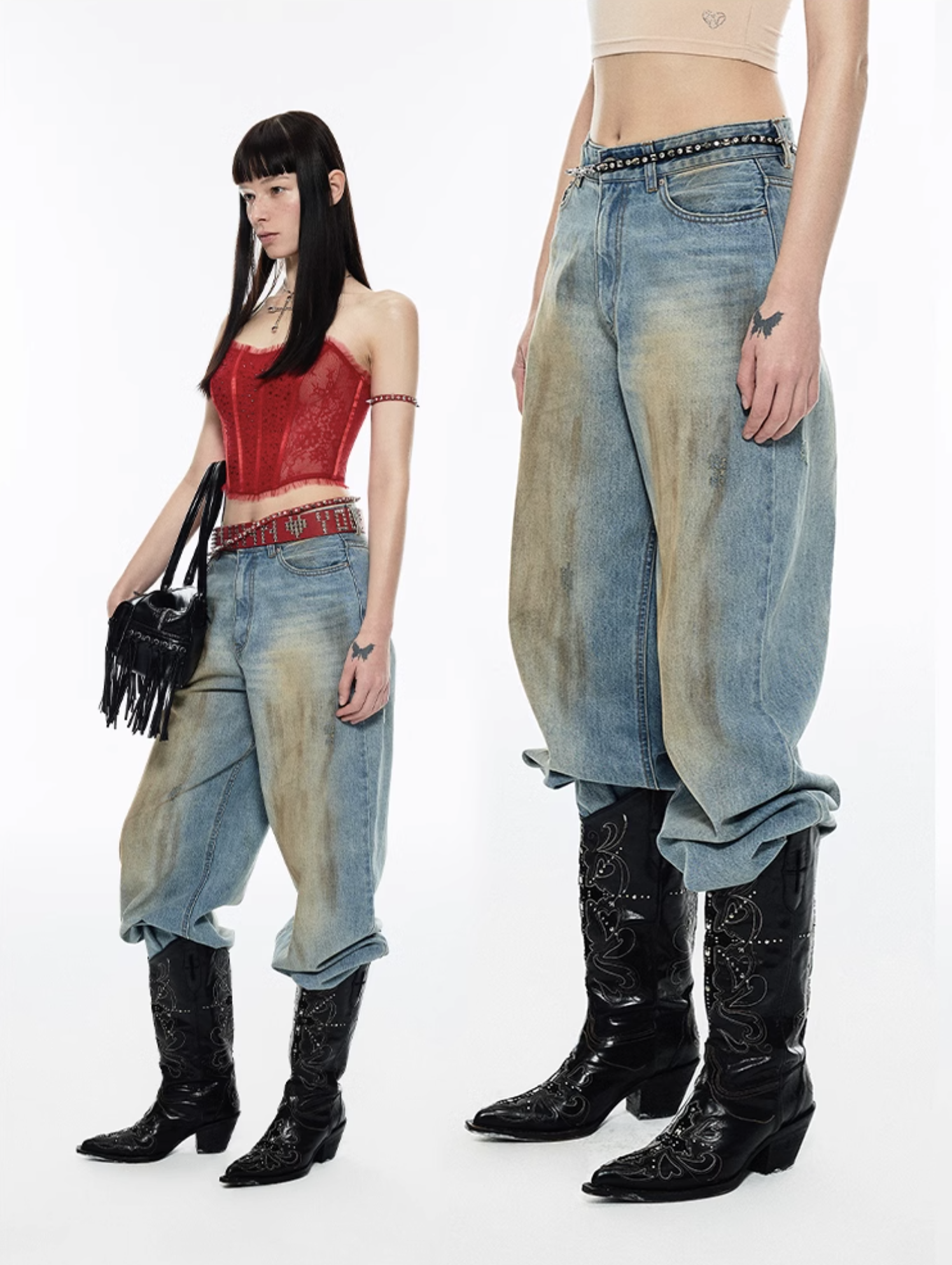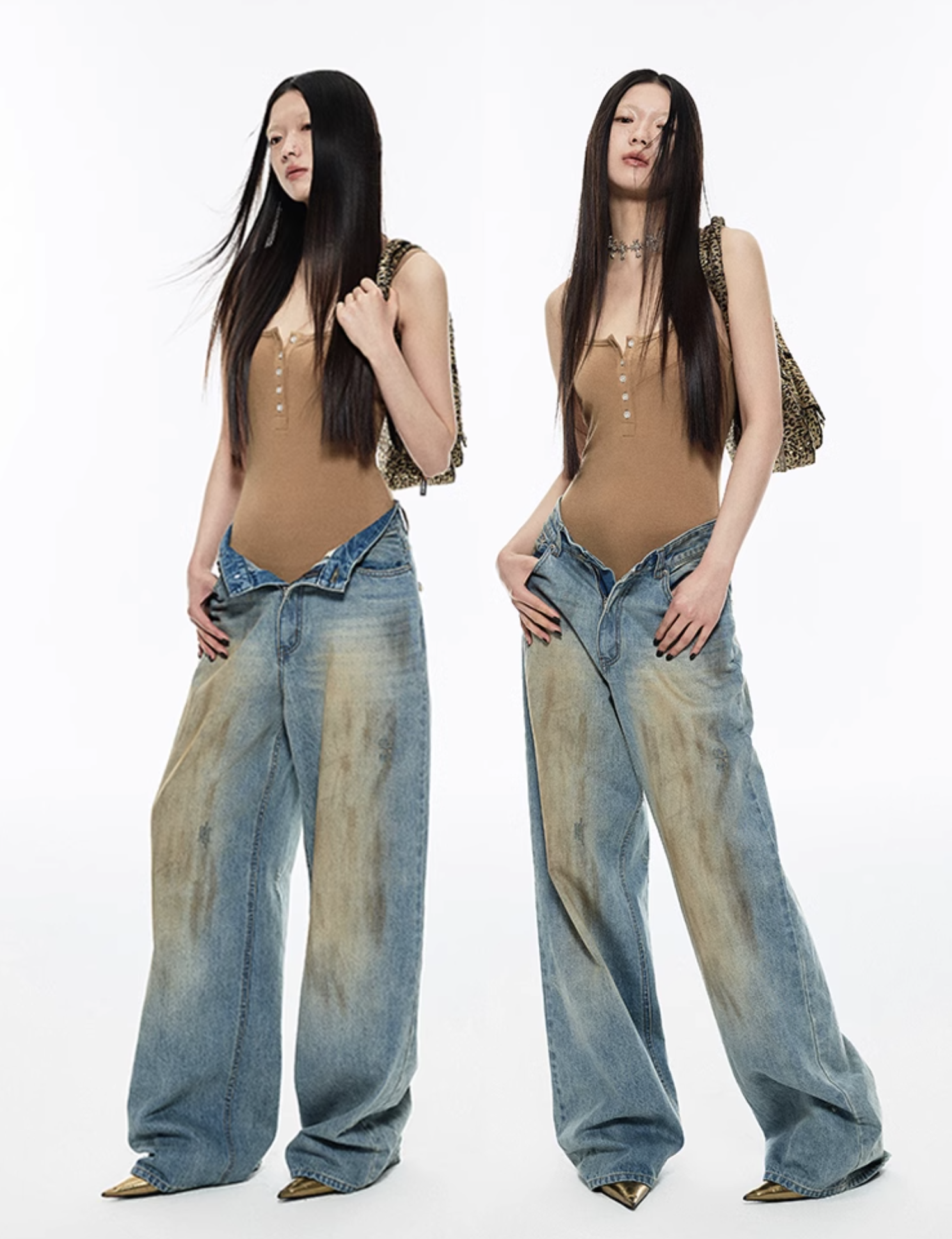✰ Discover the ultimate blend of vintage charm and modern comfort with our Retro Washed Denim Jeans. Designed to flatter all leg types, these jeans feature a straight, wide-leg cut with a raw hem and an elongated, floor-grazing length. The unique yellow mud dye adds a touch of nostalgia to your denim collection. Embrace a pair that’s as timeless as it is trendy!
