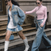✰ Trucker-style jacket in rigid cotton denim with a collar, metal buttons down the front, forward-facing shoulder seams and a yoke at the front and back. Oversized silhouette with dropped shoulders, buttoned cuffs and flap chest pockets with a button.