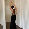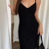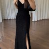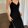 Hey prom queen we have your dream dress! The Whitney Maxi dress is a showstopper. Featuring a V-neck, zipper back and a front leg slit, Hidden back zipper closure.Back tie detail. Made in black velvet fabric. Style with a silver heel and silver gems for a complete prom look.