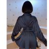 Add a touch of luxe to your weekend wardrobe with this dress. Featuring a navy hue satin material with a cowl neckline and ruched detailing. Just add tie-up heels and gold accessories for a night with the dolls.