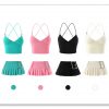 M : Top Bust 32-34″ Waist 24-26″ Length 15.7″ – Skirt Low waist 29-30″ Hip 37″ Length 9.3″