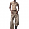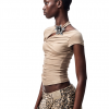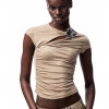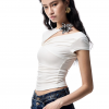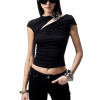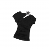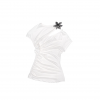✰ This T – shirt is made of high – end acetate and modal blended fabric, which is silky, skin friendly, breathable, and drapey. The three dimensional knot division design on the side of the chest cleverly modifies the figure. The custom made metal flower decoration at the collar adds a touch of delicate luxury. The full body slim cut combined with the side waist pleating technique highlights the curves while maintaining comfort during movement. It can showcase elegant and sexy feminine charm at banquets, dating, or parties.