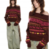 ✰ This vintage Fair Isle jacquard sweater features a relaxed fit that enhances a slim silhouette. With a flexible ribbed neckline, it can be worn off-shoulder or round-neck, offering versatile styling. DU’s design incorporates elements like snowflake and cat patterns, woven with contrast yarns for rich visual effects and retro vibes. Made from high-quality wool blend yarn, it is soft, warm, and skin-friendly. To accentuate the textured look of original wool, a 3-needle knitting technique is used, giving it a structured yet soft touch that exudes a relaxed, vintage winter vibe.